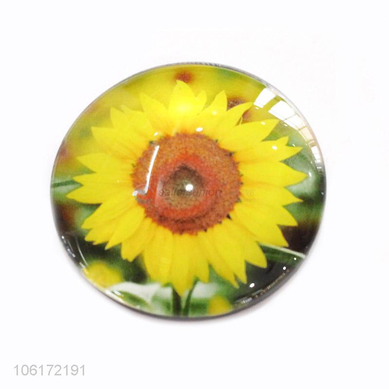Promotional cheap sunflower pattern round glass fridge magnet