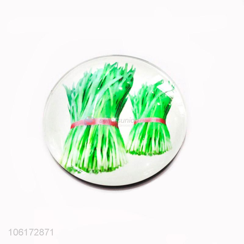 Customized cheap vegetables pattern round glass fridge magnet