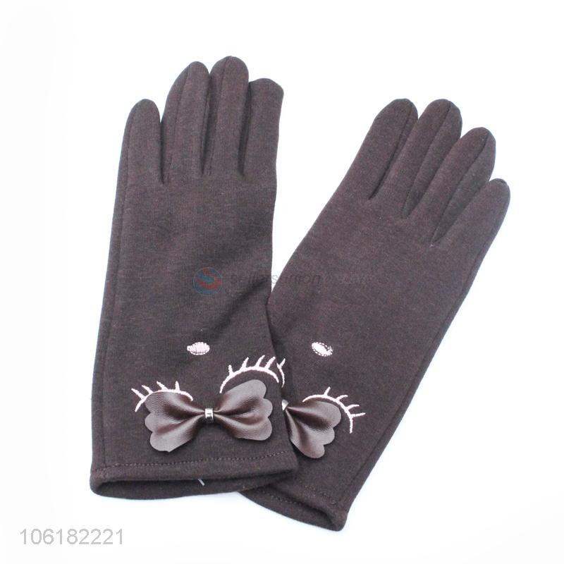Custom Bowknot Design Winter Warm Gloves For Women