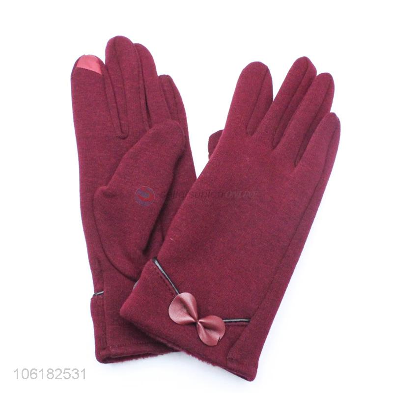 Fashion Winter Ladies Warm Gloves With Bowknot