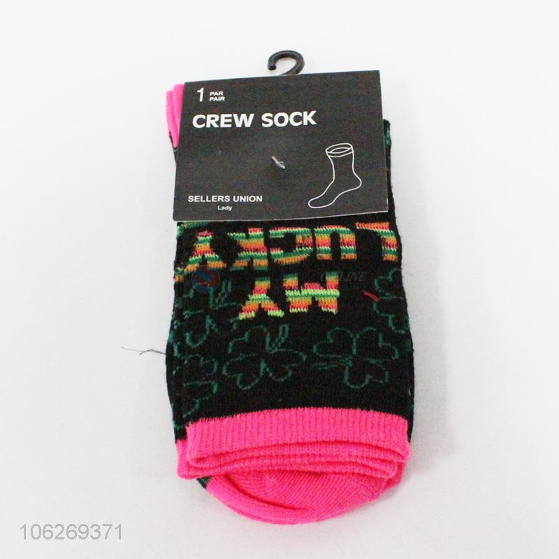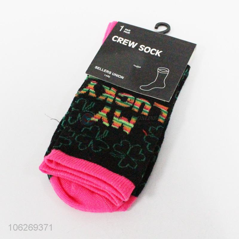 Latest design four-leaf clover pattern ladies crew socks