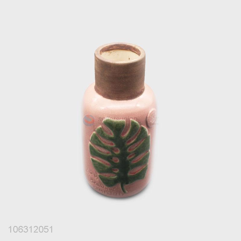 Latest design leaf embossment ceramic porcelain vase