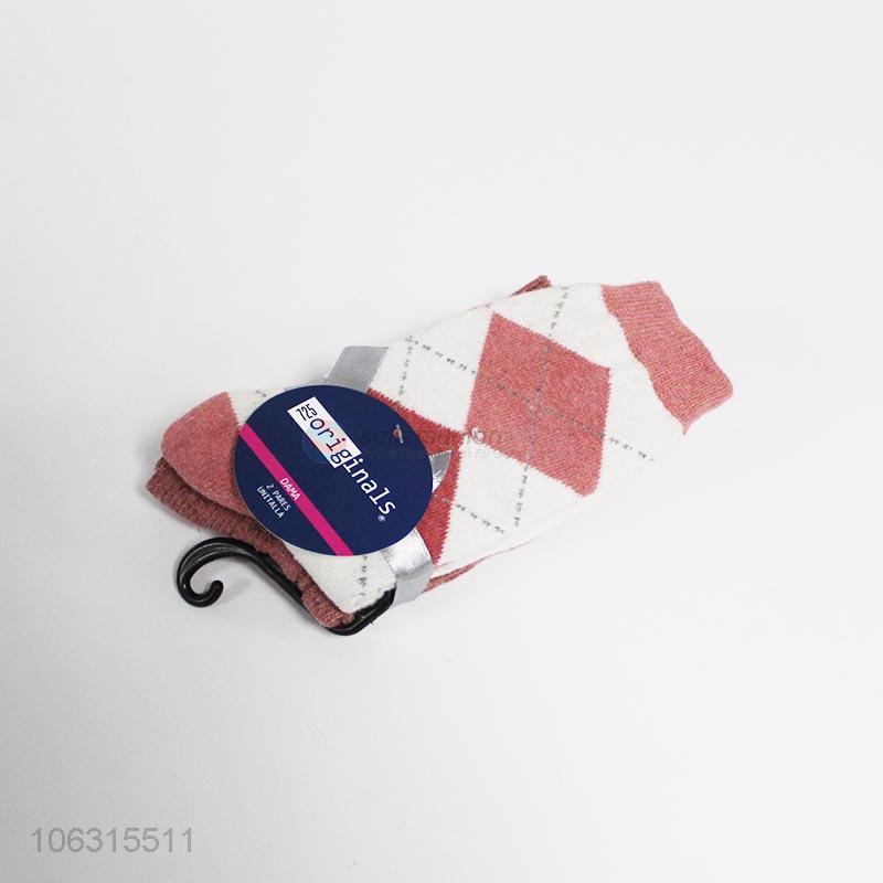 Popular European style rhombus pattern women socks