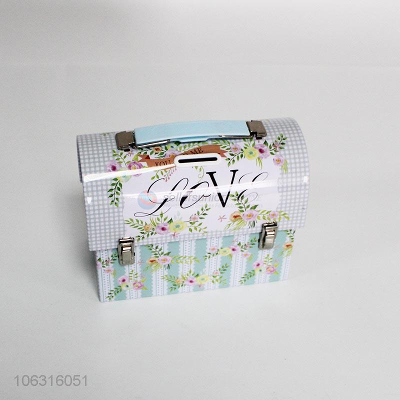New arrival handbag shaped floral printed iron piggy bank