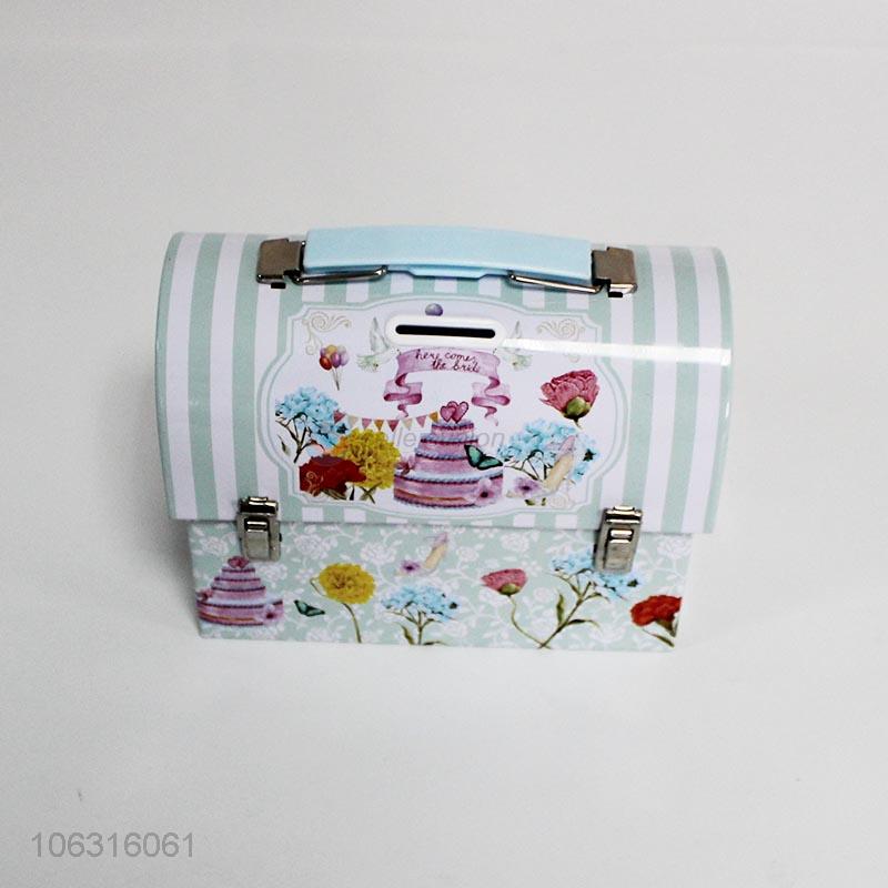 Hot sale newest handbag shaped printed iron money box