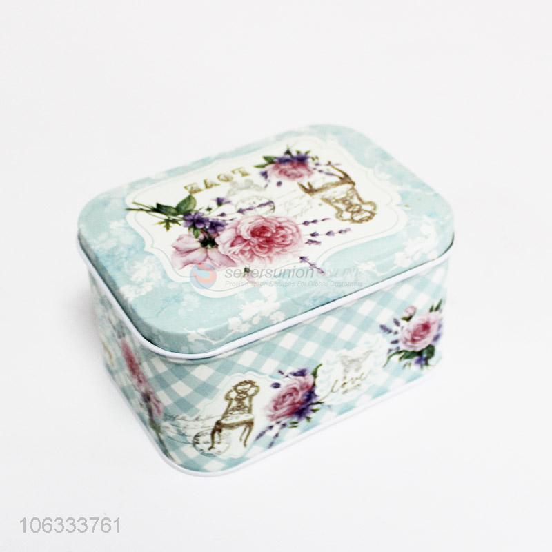 Multifunctional delicate flower printed rectangular iron cans