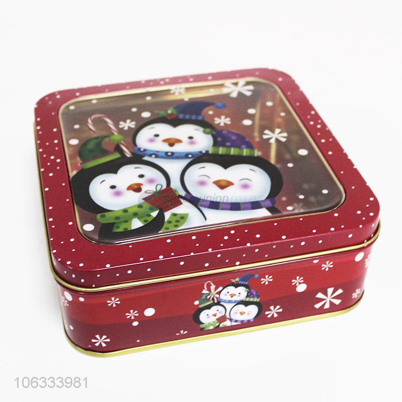 Hot sale cute penguin printed rectangular iron cans