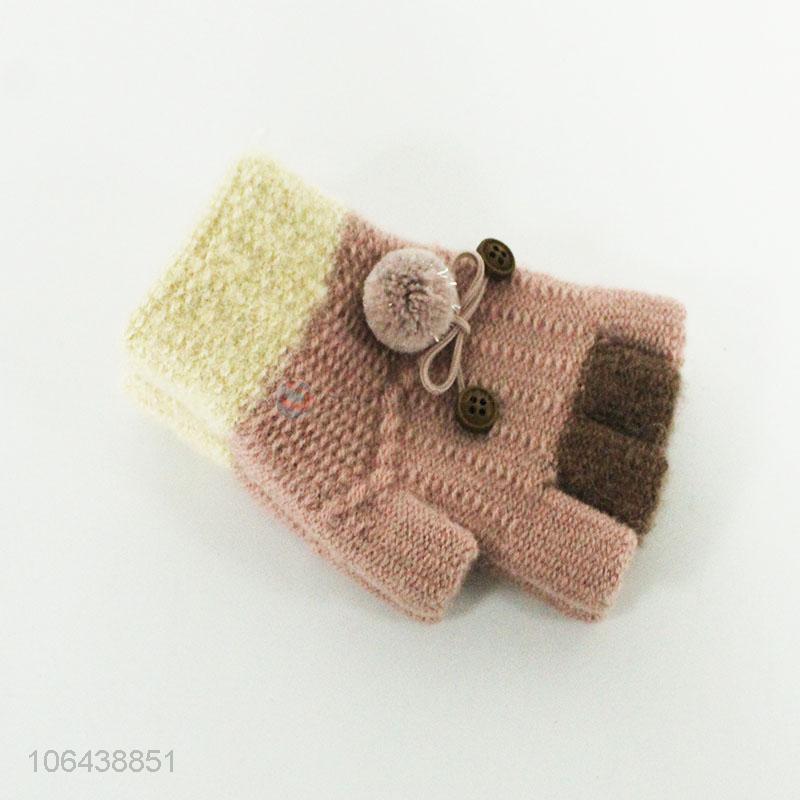 Hot products young girl winter half-finger knitting gloves