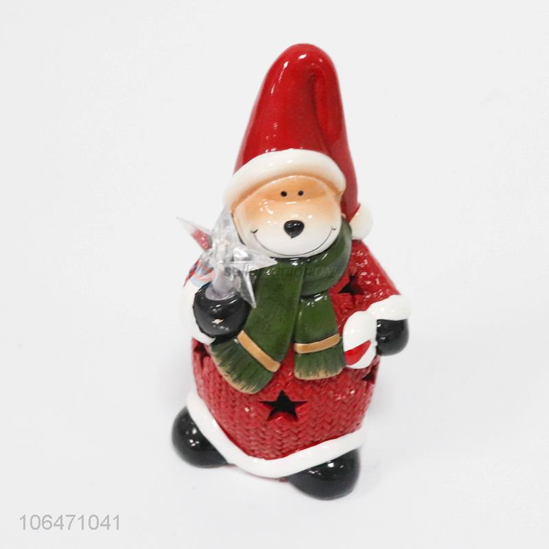 Promotional home decoration Christmas reindeer ceramic crafts with led light