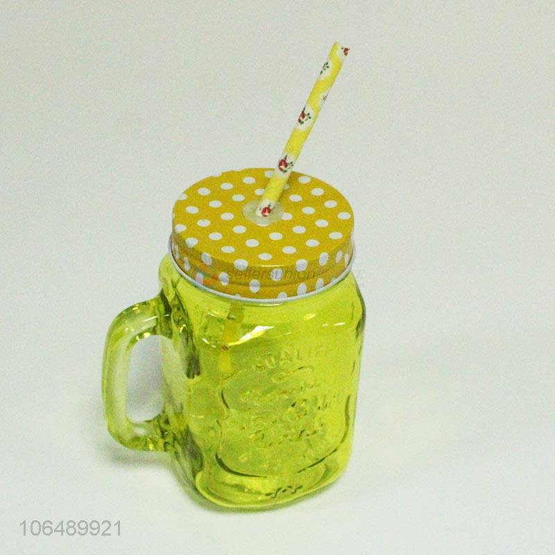 Hot products fashion colored glass juice cup mason cup with straw