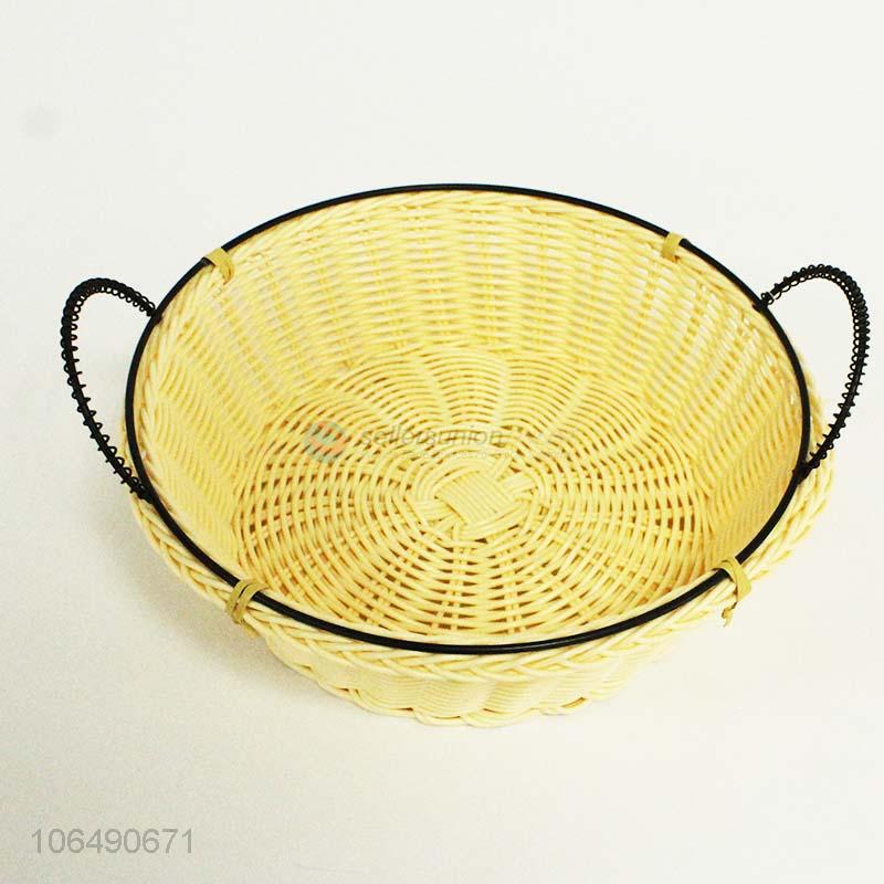 Good quality household round woven storage basket with double handles