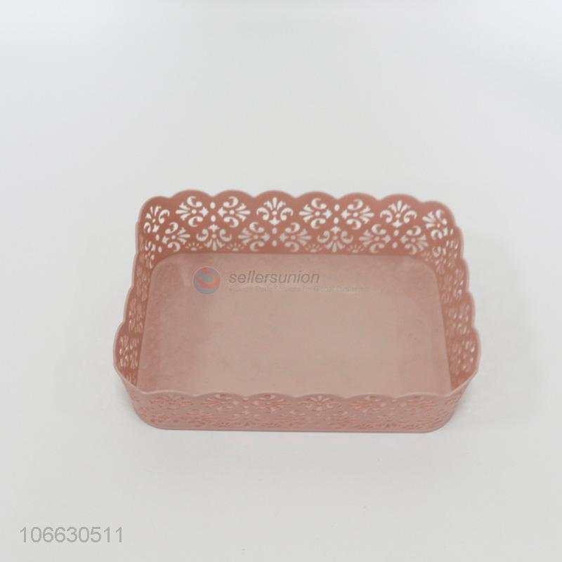 China supplier rectangle plastic fruit basket with hollowed lace sides