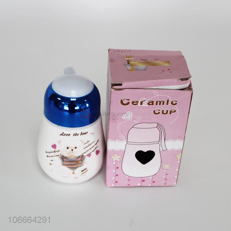 Best sale cartoon bear printed ceramic cup with lid