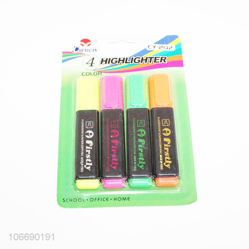 Wholesale 4pcs stationery products plastic colorful highlighters