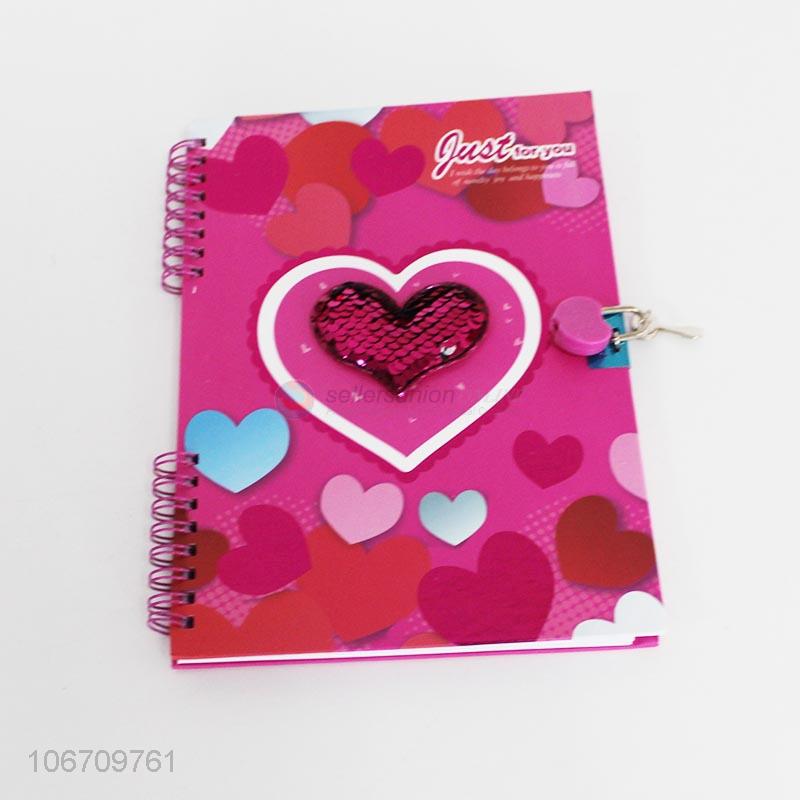 Promotional fashion heart printed notebook with lock and key