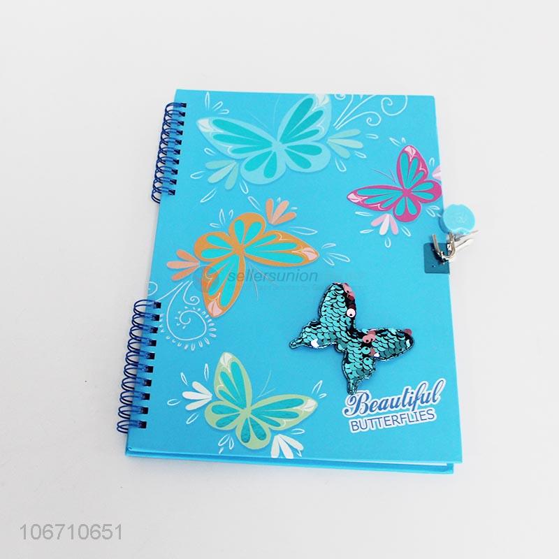 High sales butterfly printed notebook with lock and key