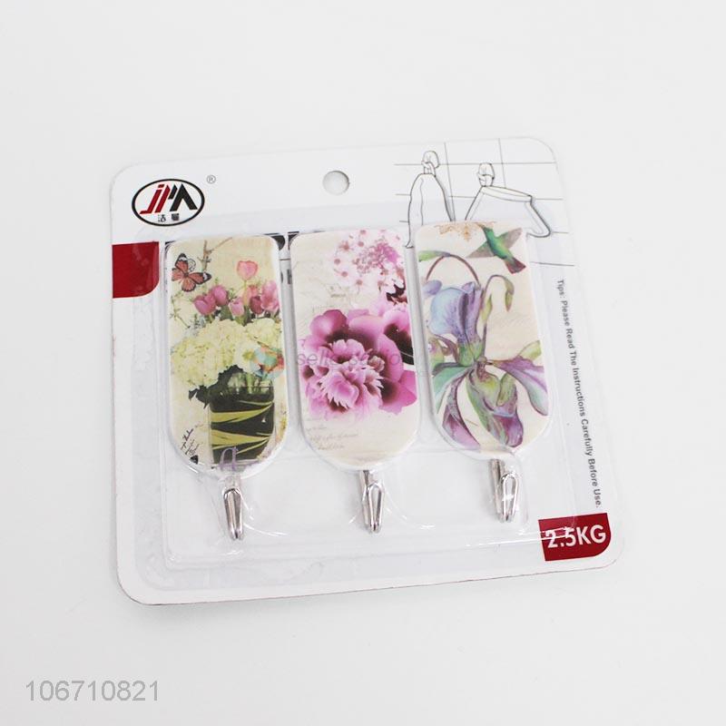 New design flower printed sticky hooks wall hooks