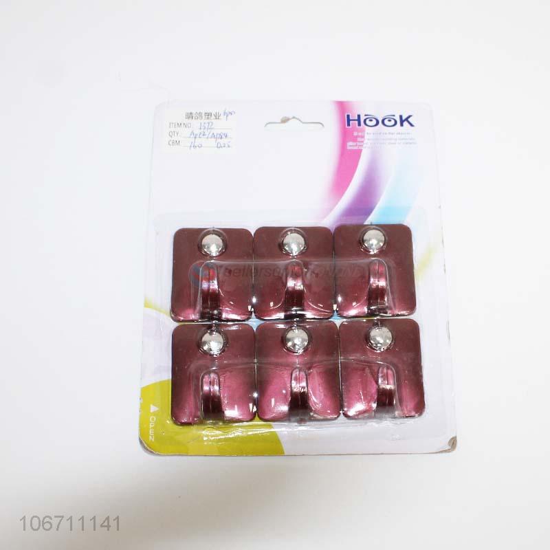 Wholesale cheap 6pc/set colored plastic sticky hooks wall hooks