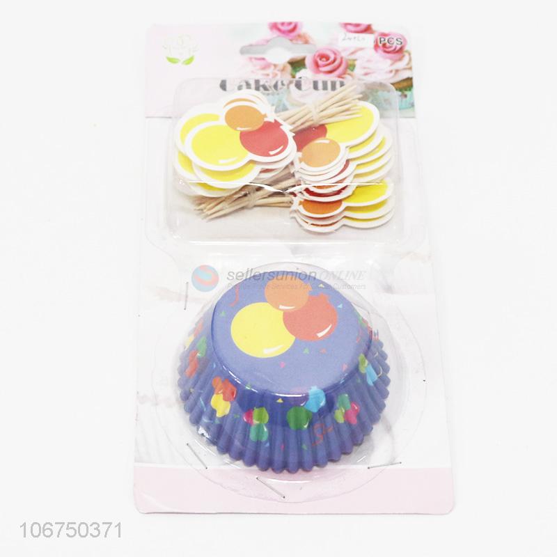Wholesale custom 24pcs cake baking cups and cake picks set