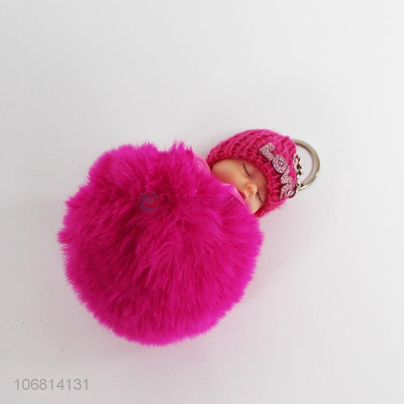 China supplier sleeping baby doll key chain with pom poom