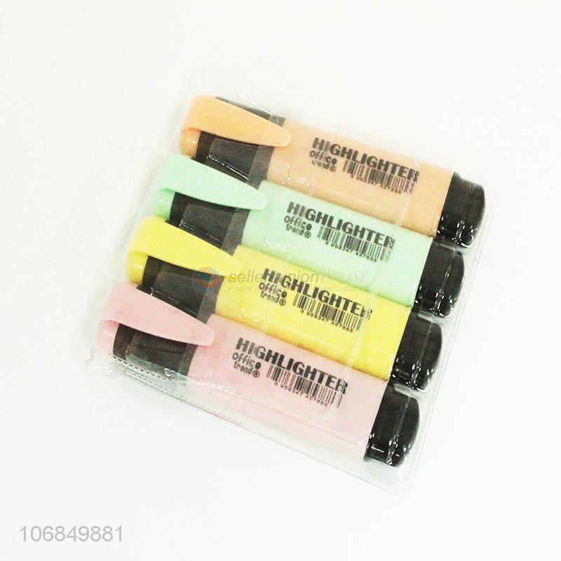 Wholesale price school stationery 4 colors plastic highlighters