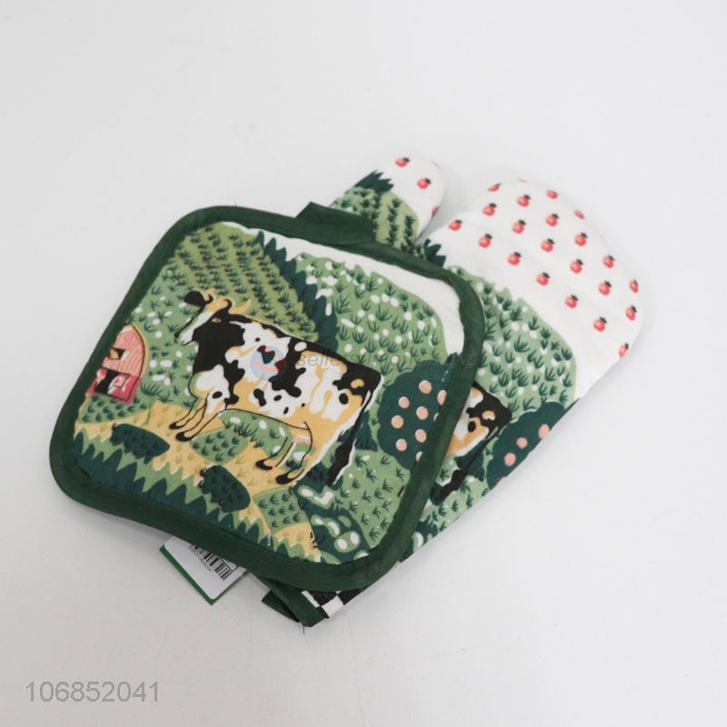 Wholesale custom printing microwave oven mitt and pot pad set