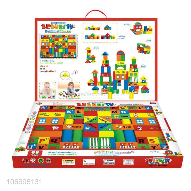 China OEM 68pcs colorful wooden building blocks toddler educational toys