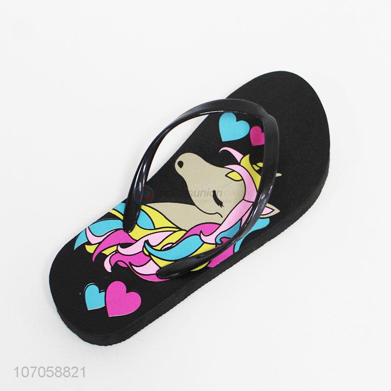 New design cartoon unicorn printed teen flip flops slippers