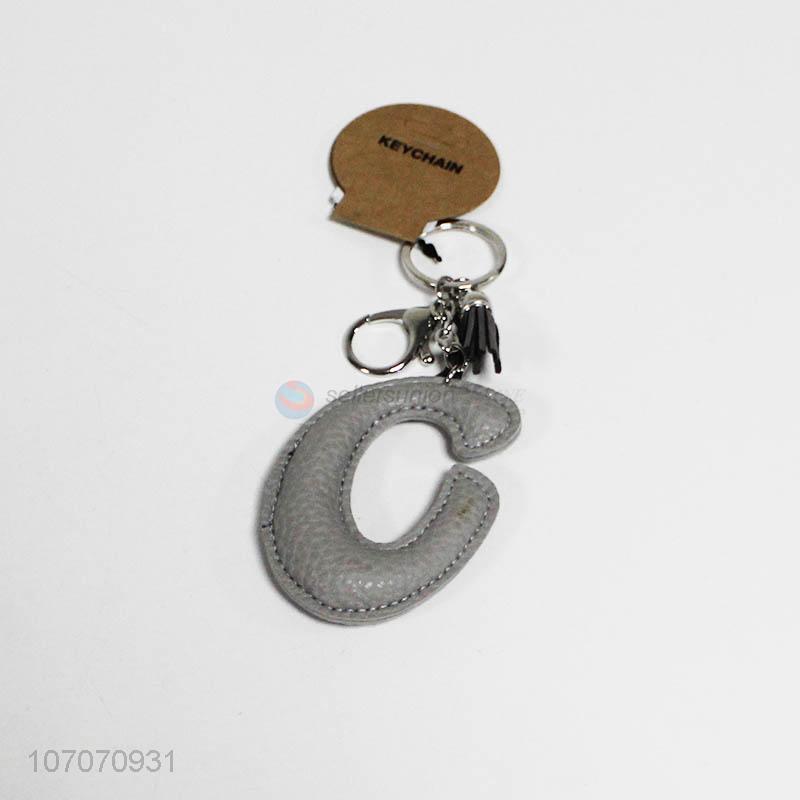 Creative design fashion key chain pu leather alphabet letter key ring