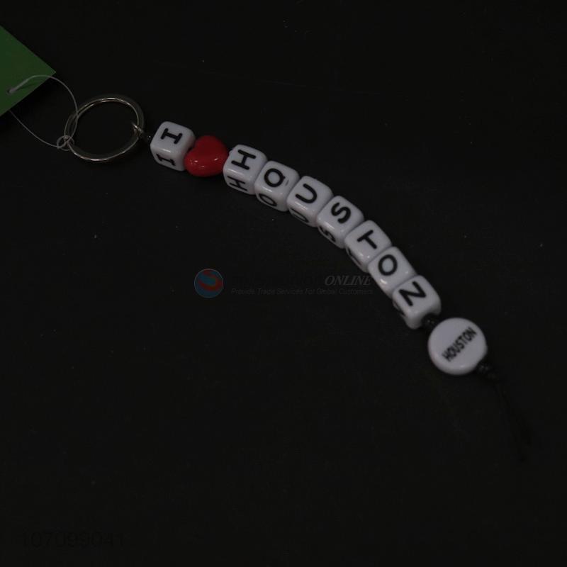 New products engraved cube bead key chain for houston souvenir