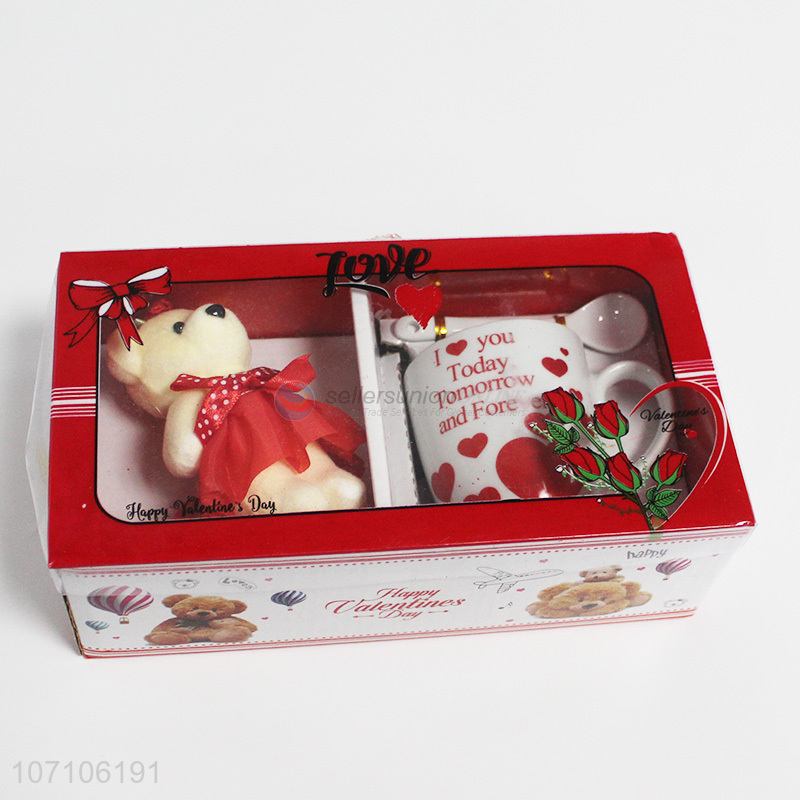 Promotional exquisite Valentine gifts ceramic mug and toy bear set