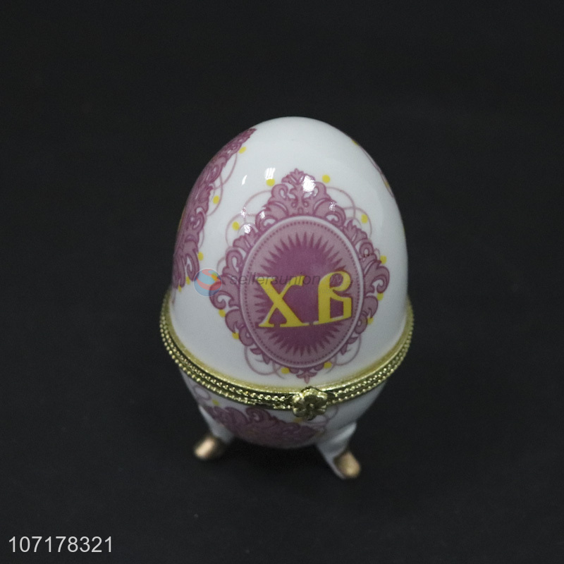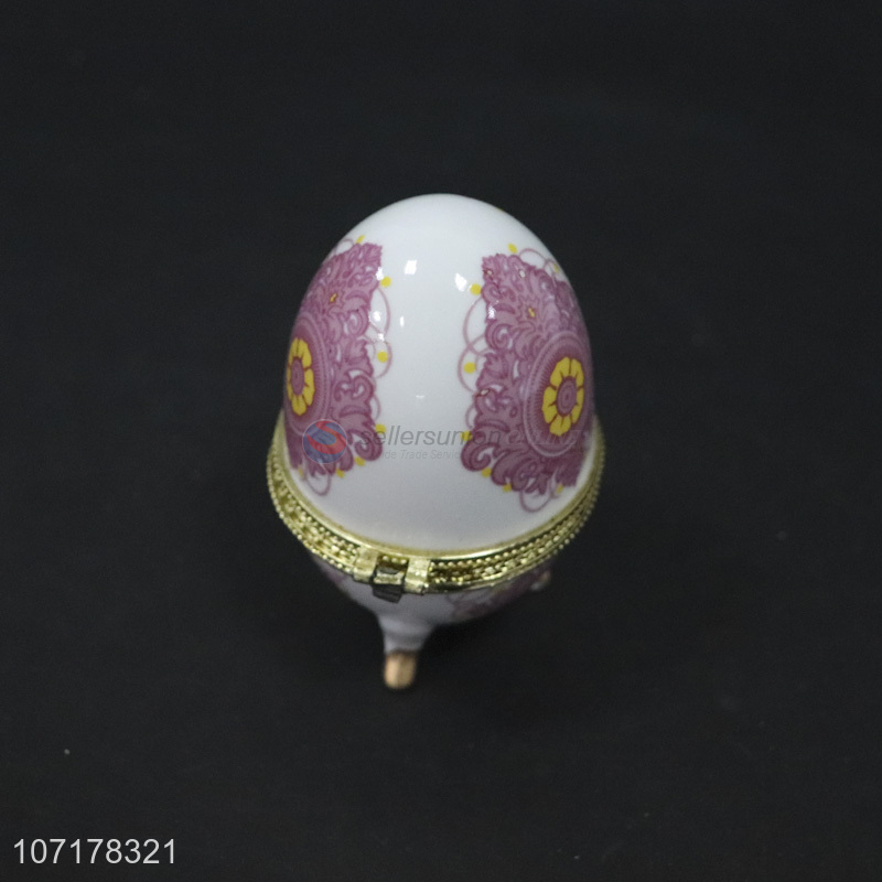 Wholesale creative egg shape enamel ceramic jewelry box porcelain container