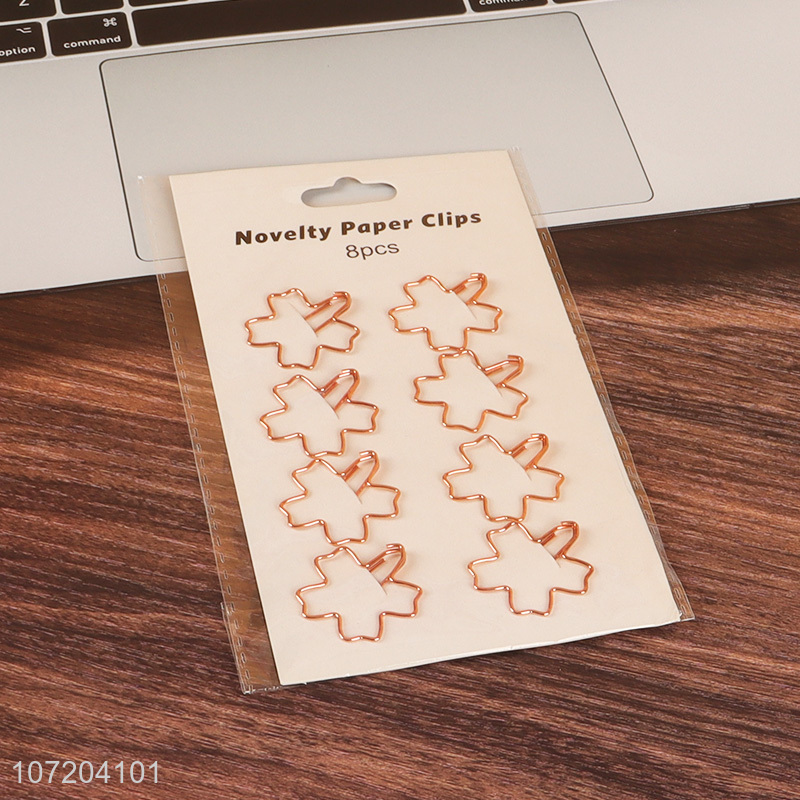 Attractive design 8 pieces four-leaf clover shape iron paper clips metal bookmarks