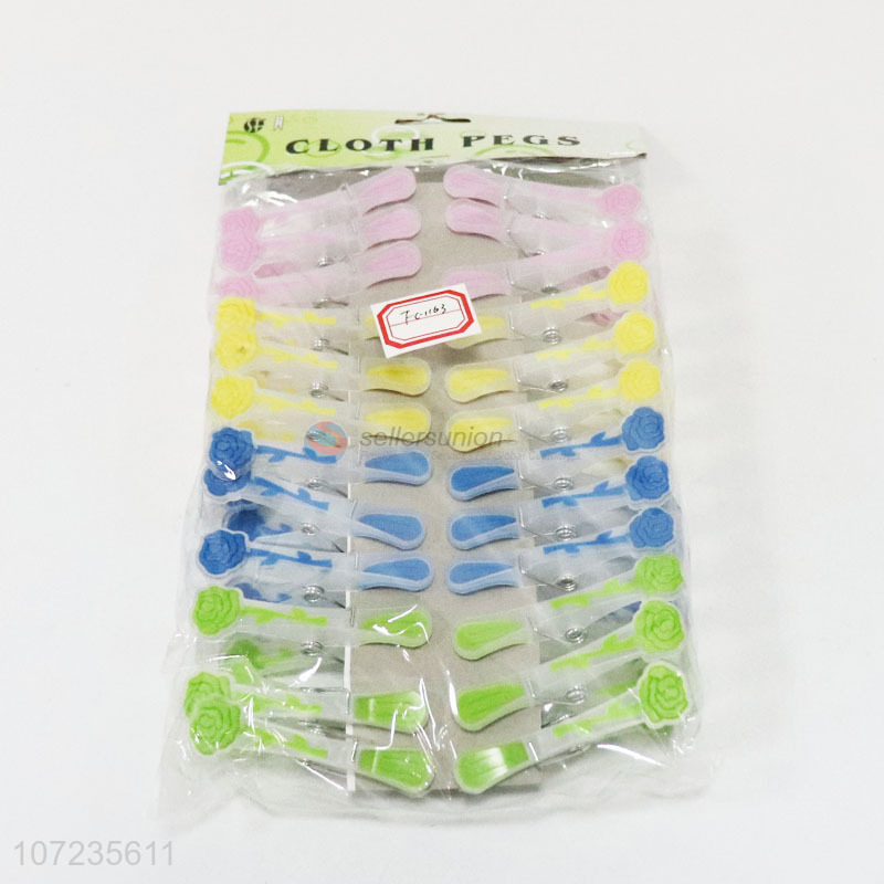 Factory wholesale 24pcs plastic clothes hanging pegs clothespins