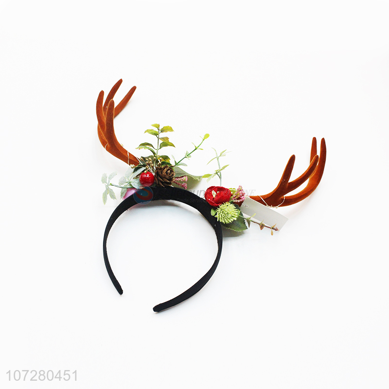 Hot Selling Girls Flower Antlers Hairband Funny Cute Deer Horn Christmas Hairbands