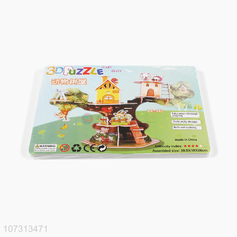 Latest design children paper puzzle 3D animal tree house puzzle toy