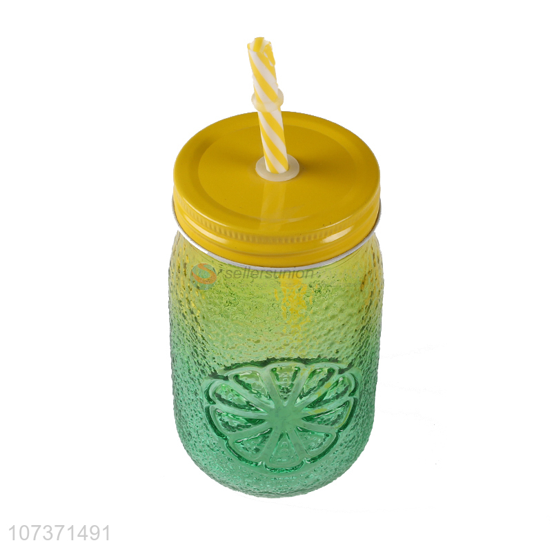 Wholesale Colorful Glass Mason Jar Beverage Cup With Straw And Lid