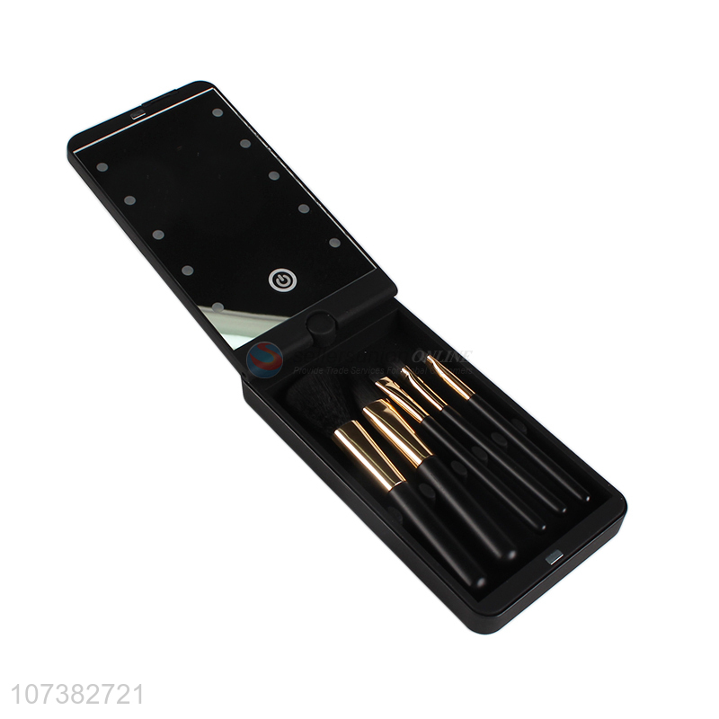 High-end 360 degree rotation led light makeup mirror with cosmetic brushes