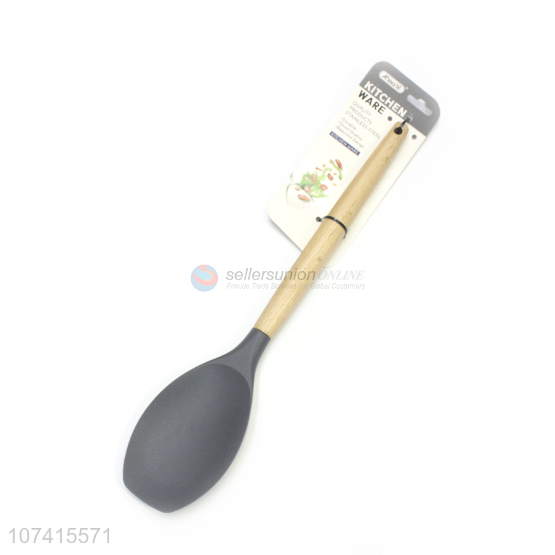 High Quality Wooden Handle Silicone Long Meal Spoon
