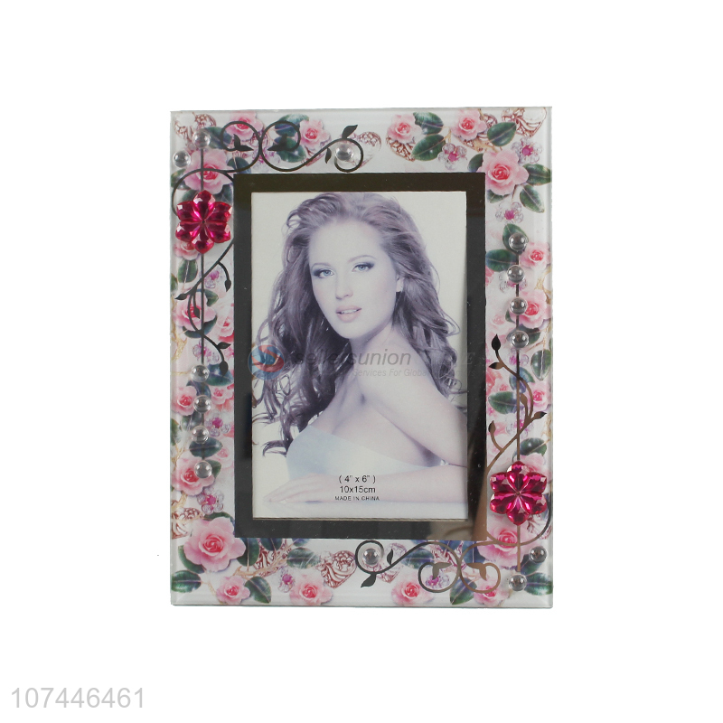 Delicate Design Flower Pattern Glass Photo Frame With Back Stander