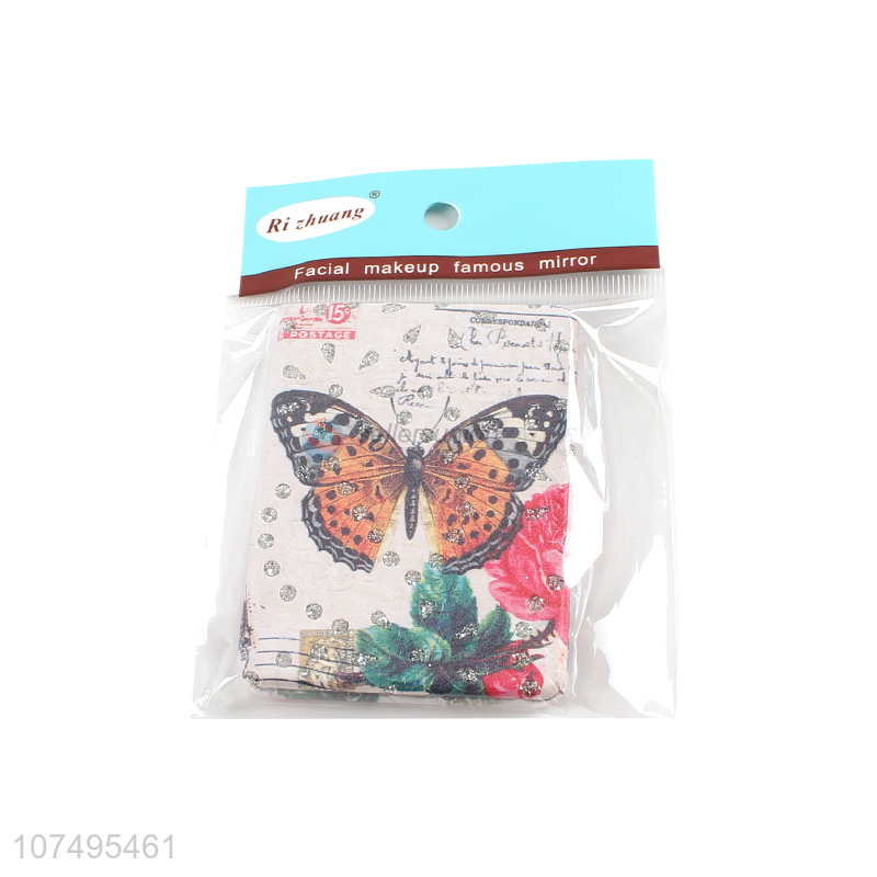 Fashion Butterfly Pattern Foldable Cosmetic Mirror For Sale