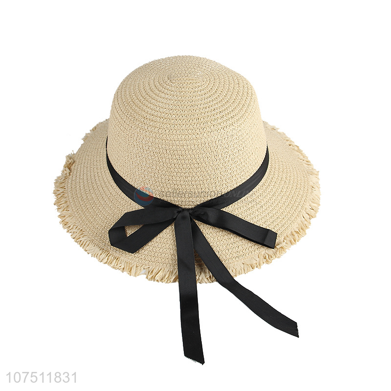 Good quality ladies summer paper straw hat sun hat with ribbon