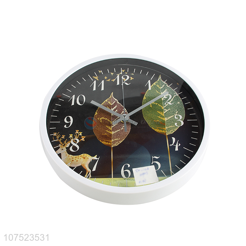 Factory direct sale elk & leaf printed living room wall clock creative quartz wall clock