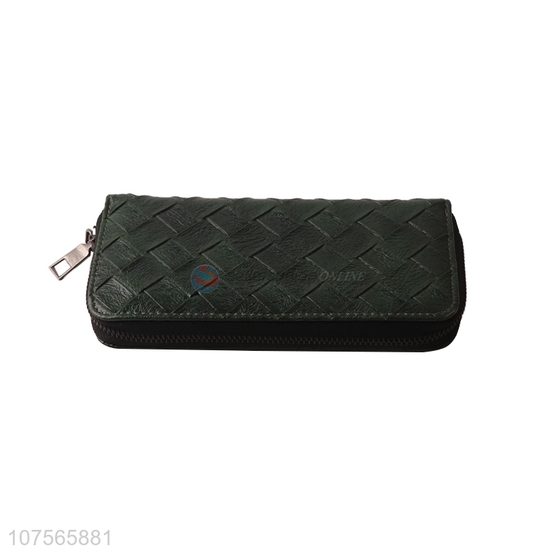 Low price women zipper pu leather purse long wallets