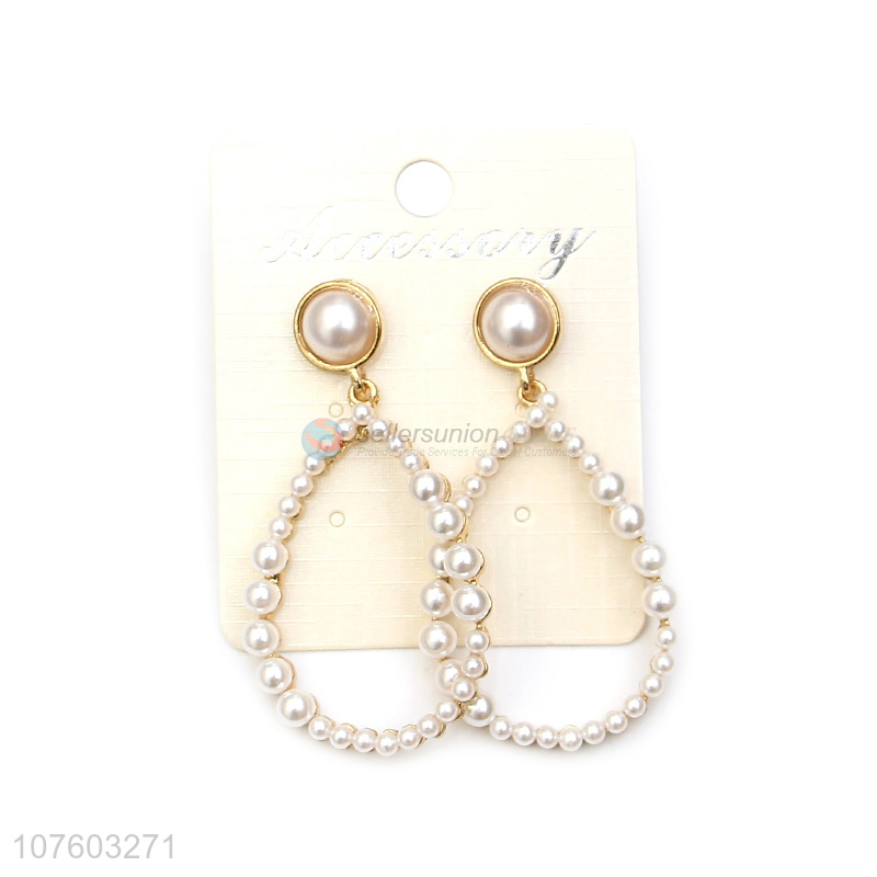 Wholesale popular waterdrop hoop pearl earring pearl alloy ear studs