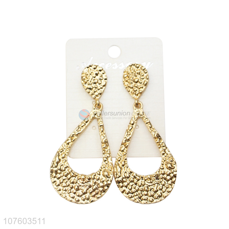 Latest arrival hollow waterdrop alloy ear studs with hammered texture