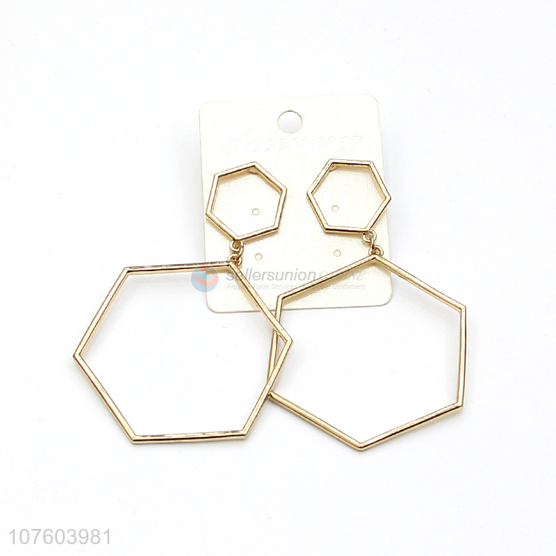 Fashion geometric alloy earrings hexagonal statement earrings