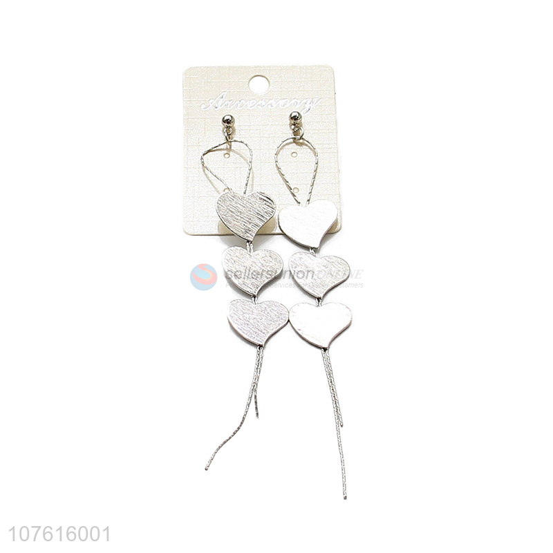 Wholesale Silver Heart Shape Long Tassels Earring For Women