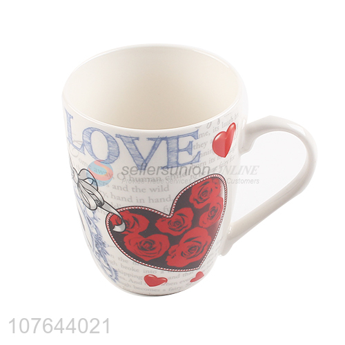 Heart printing modern style cheap price drinking ceramic water cup