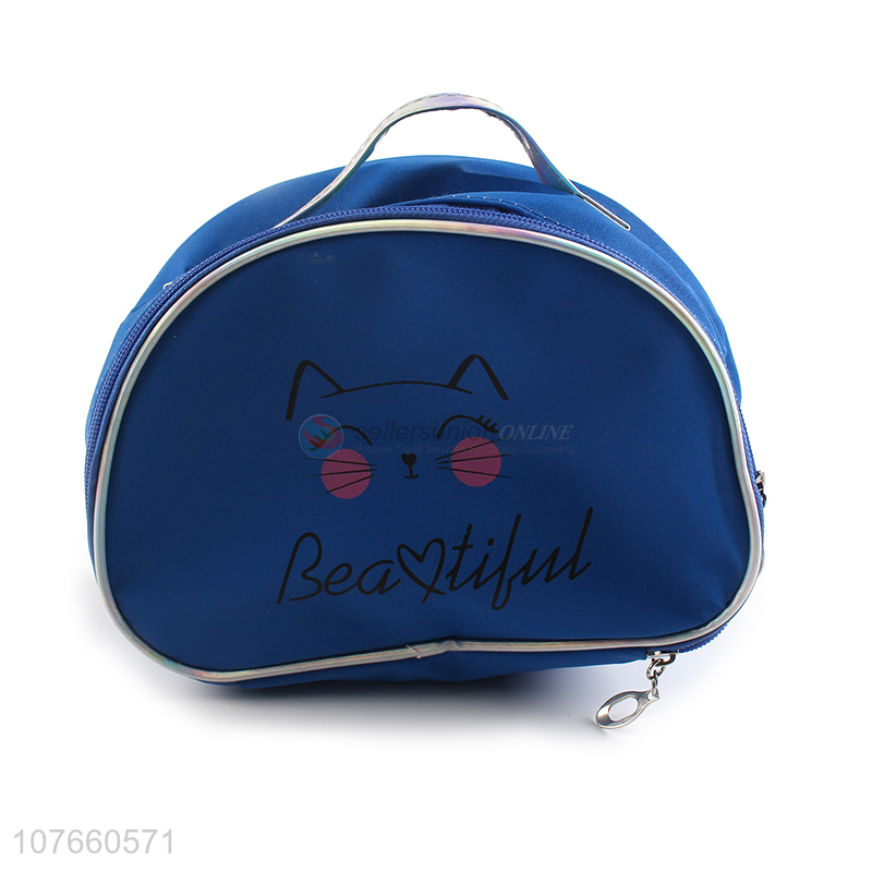 Hot sale blue portable cosmetic handbag travel makeup bag